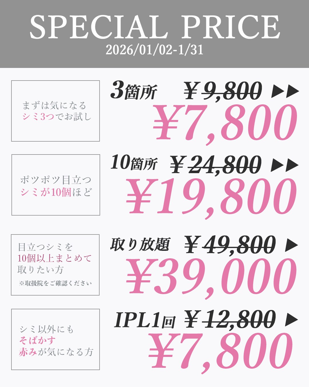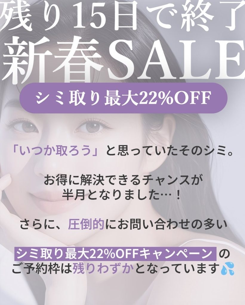 【残り15日⚠️】新春SALE限定《シミ取り22%OFF》の予約枠が埋まり始めています🚨▶︎