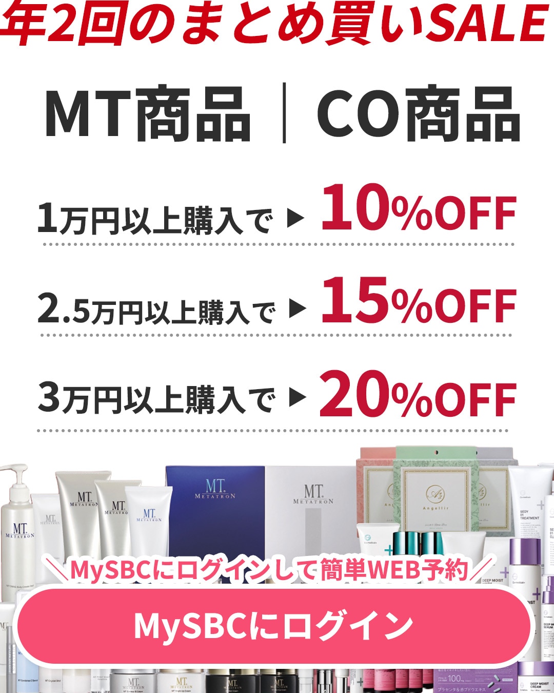 SBCメディカルグループでは、2018年6月1日に施行された医療広告ガイドラインを受け、ホームページ上からの体験談の削除を実施しました。また、症例写真を掲載する際には施術の説明、施術のリスク、施術の価格も表示させるようホームページを全面的に修正しております。当ホームページをご覧の患者様、お客様にはご迷惑、ご不便をおかけ致しますが、ご理解のほどよろしくお願い申し上げます。