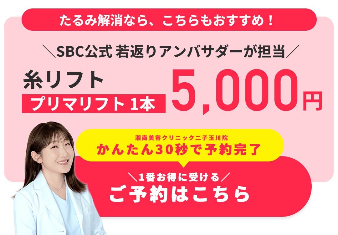湘南美容クリニック二子玉川院では、二重・目の下のたるみ取り・眉下切開・糸リフトなどの「目元・若返り整形」、医療ハイフ・美容注射・プロファイロなどの「美容皮膚科最先端治療」他、医療脱毛、お客様一人一人に合わせたオーダメイドの施術を叶えるレーザー治療も各種取り揃えております!