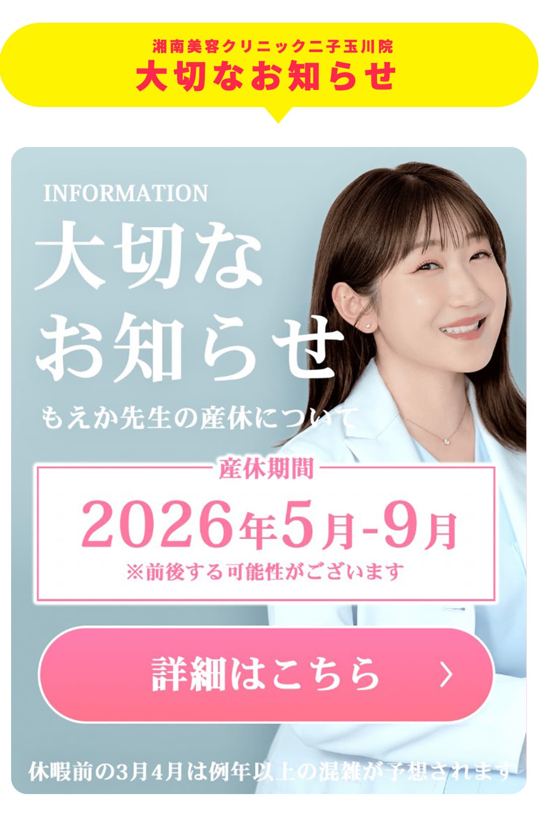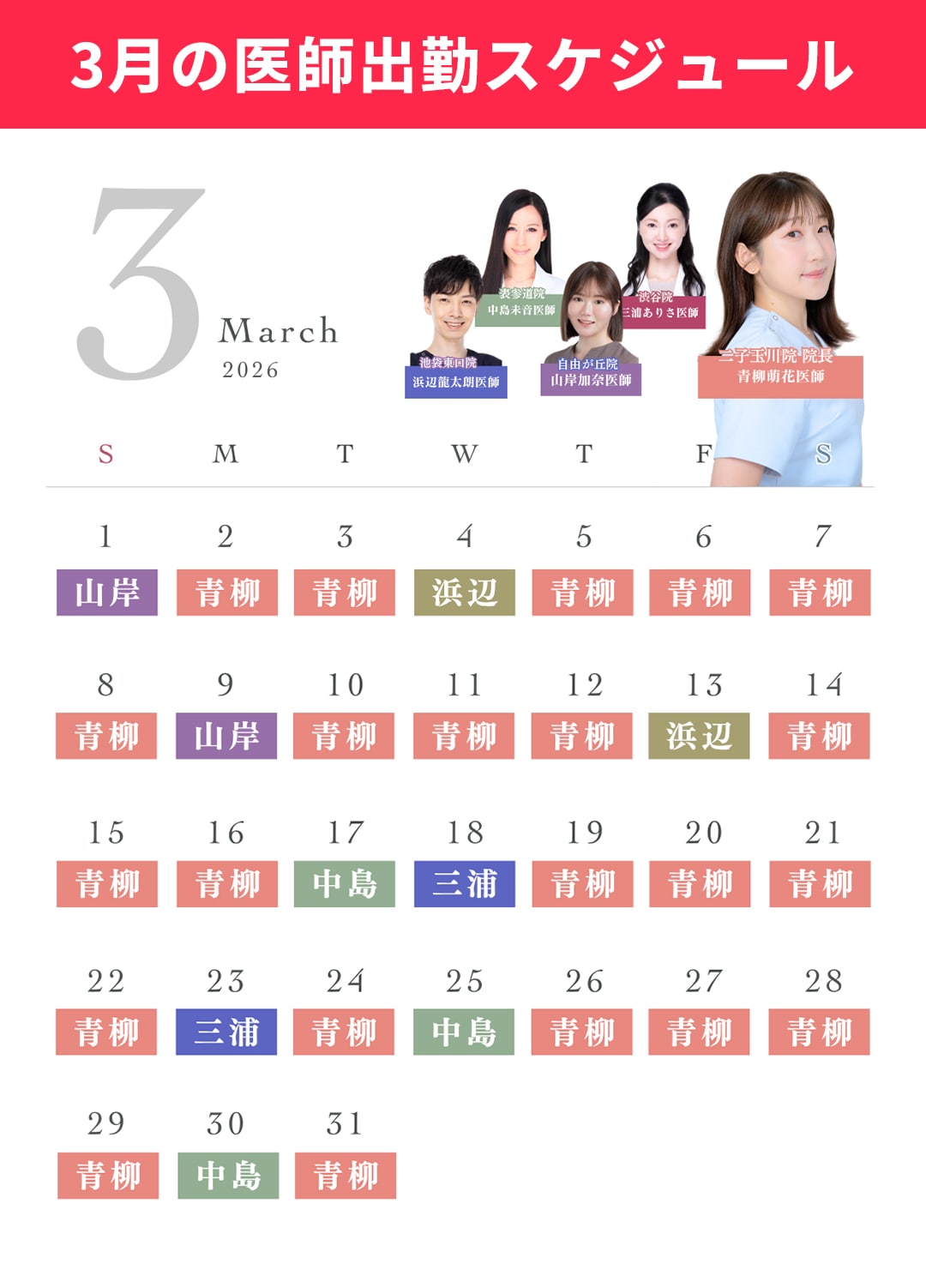 【診療時間】AM9:00~PM6:00 【営業日】 土・日・祝も毎日営業※予約制 ※ ※2025年3月より営業時間が変更となりました |