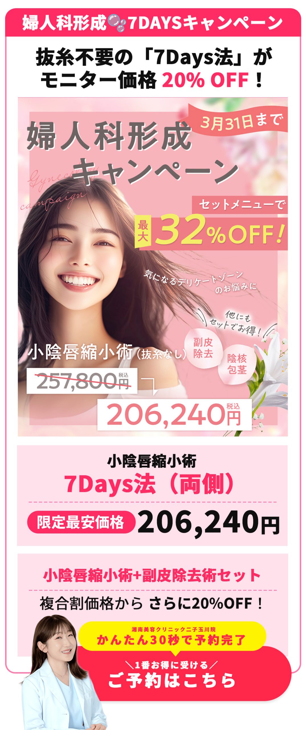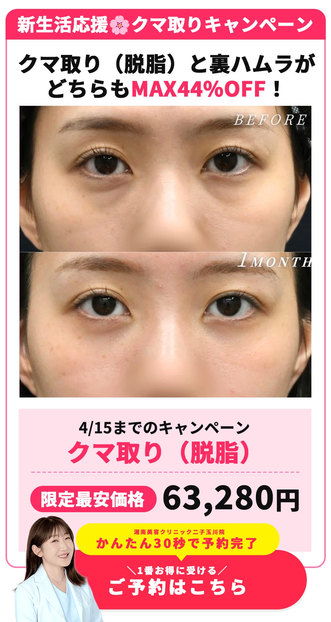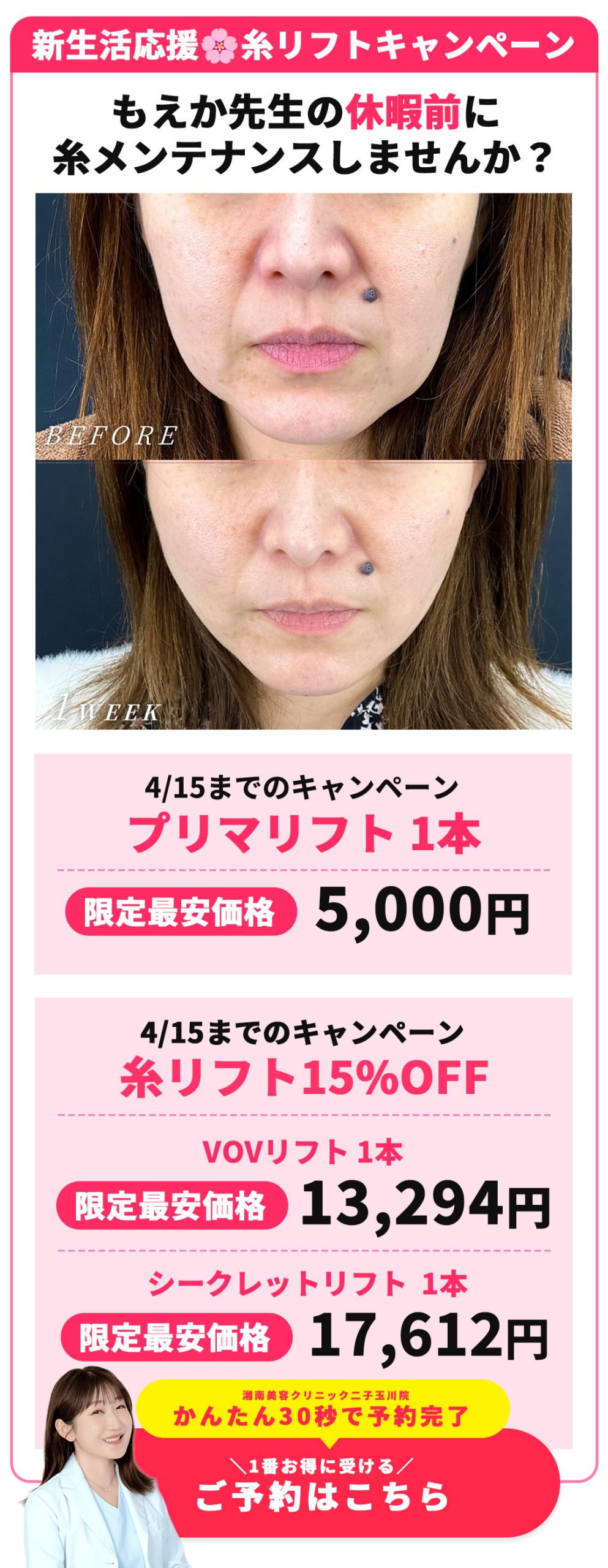 湘南美容クリニック二子玉川院では、二重・目の下のたるみ取り・眉下切開・糸リフトなどの「目元・若返り整形」、医療ハイフ・美容注射・プロファイロなどの「美容皮膚科最先端治療」他、医療脱毛、お客様一人一人に合わせたオーダメイドの施術を叶えるレーザー治療も各種取り揃えております!
