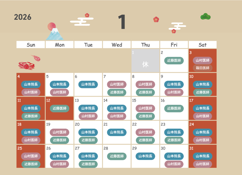 ⑤1月の医師出勤カレンダー
