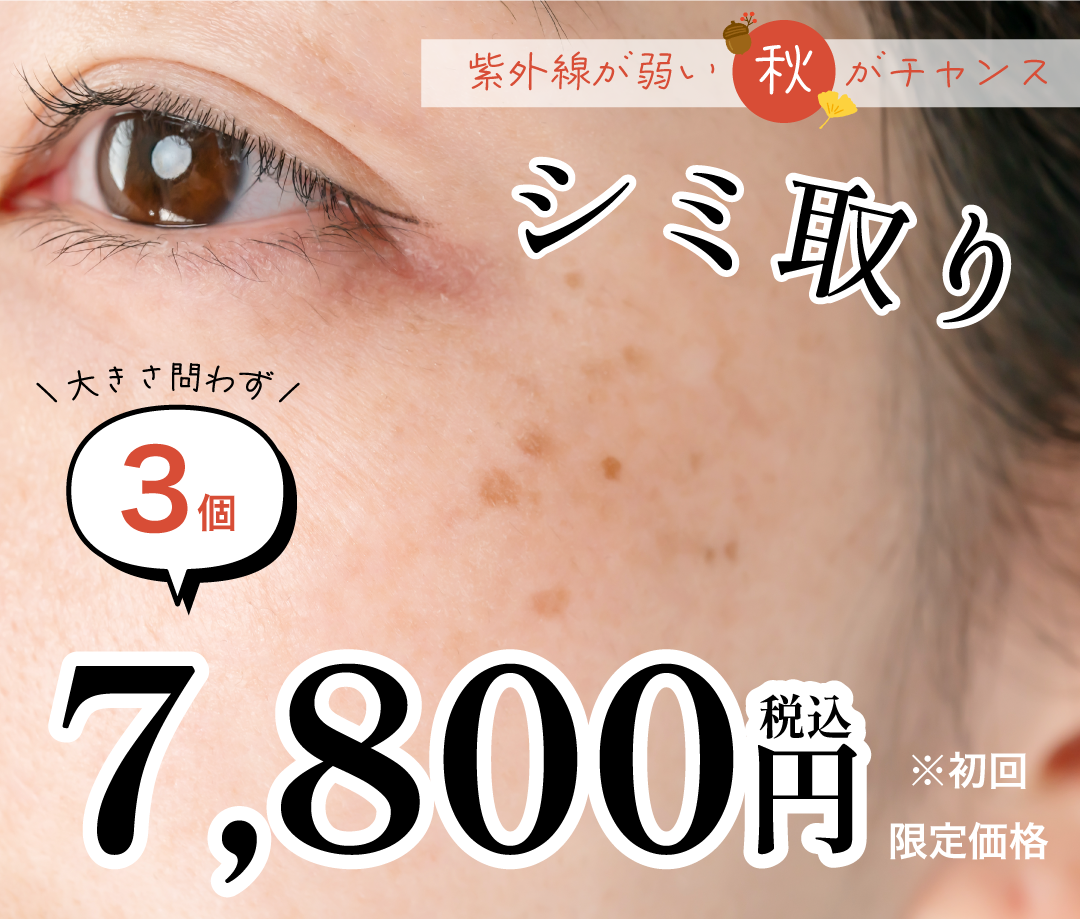 【🍂秋はチャンス!】シミ取り3個で7,800円!初回限定価格でお得にシミ取り♪