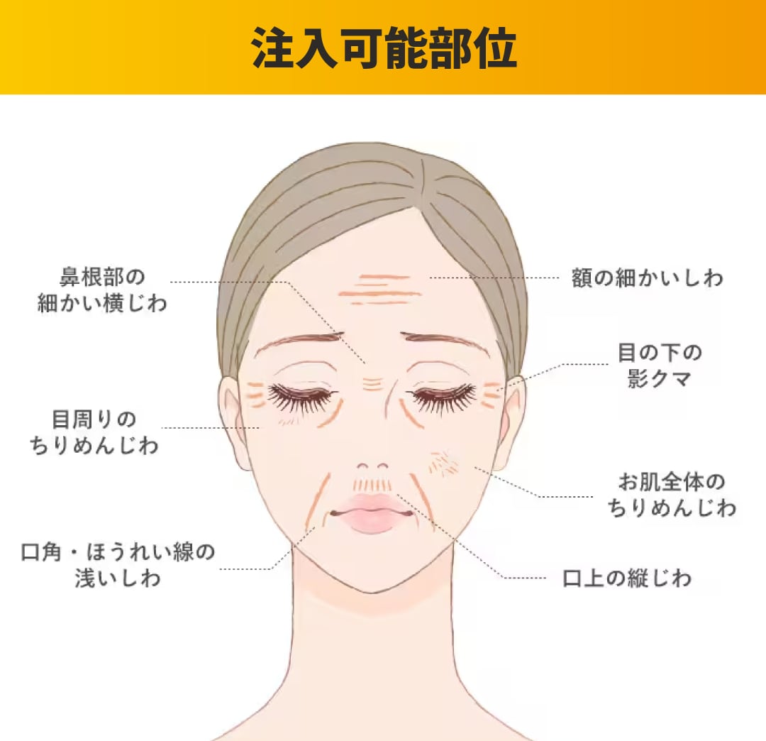 特に目周りなど細かい部位にもなじみやすく、ヒアルロン酸やボトックスでは難しいエリアにも対応可能です。