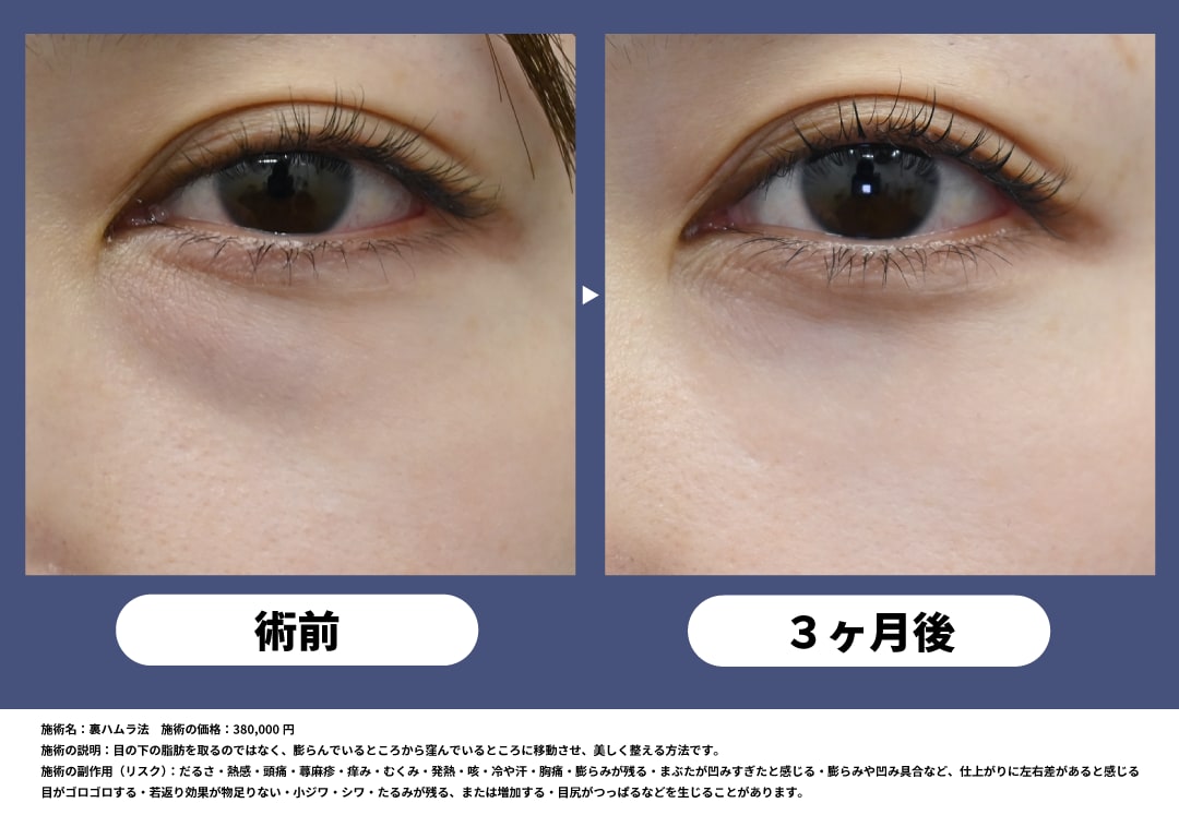 クマの脂肪を移動する施術です。クマの下に凹みがある方におすすめの施術です。