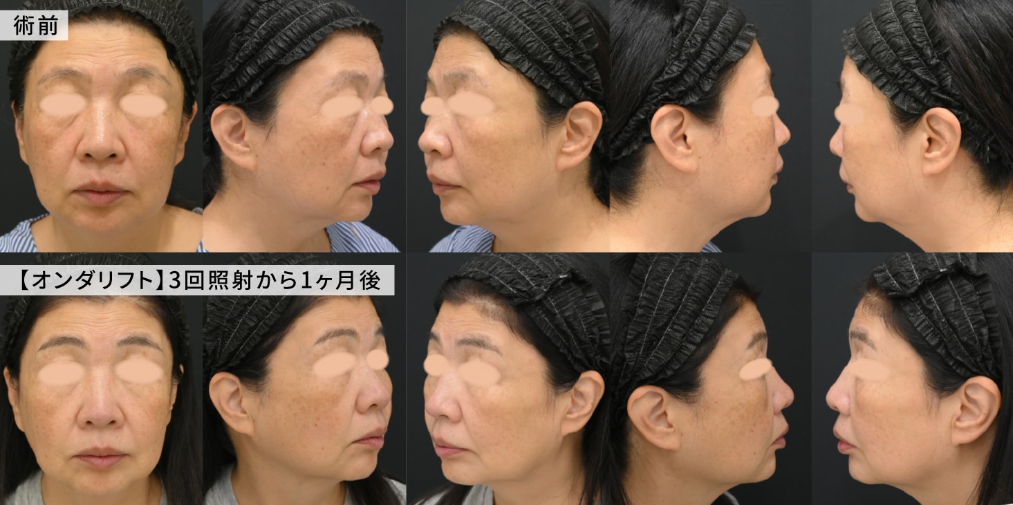 当院銀座一丁目院でオンダリフト(ほほ・あご下)3回コースを受けられたお客様です。