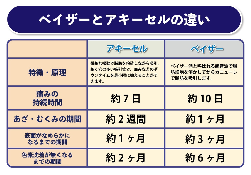 ベイザー脂肪吸引とアキーセル脂肪吸引どっちがいい?