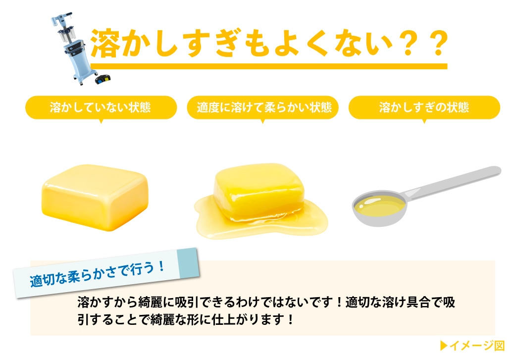 脂肪吸引は形を作る手術なので、ベストな柔らかさの脂肪の状態で形を作ることが大切です。