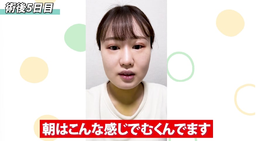 朝は、顔がまんまるに腫れていてむくんでいる感じがあり、口が開けづらくて喋りにくかったです。