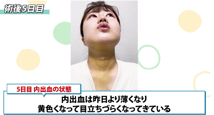 顎下も内出血がひどかったのですが、どんどん下に降りてきてだいぶ少なくなった気がします。
