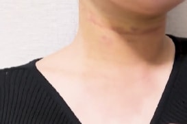 内出血は首にもなく、鎖骨の下あたりに少しだけ黄色い部分が残っていますが、ほとんど気になりません。