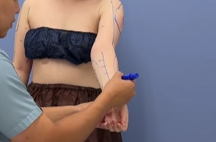 二の腕の前側にお肉が付いている方は、肘のシワから上の脂肪を取る方もいます。