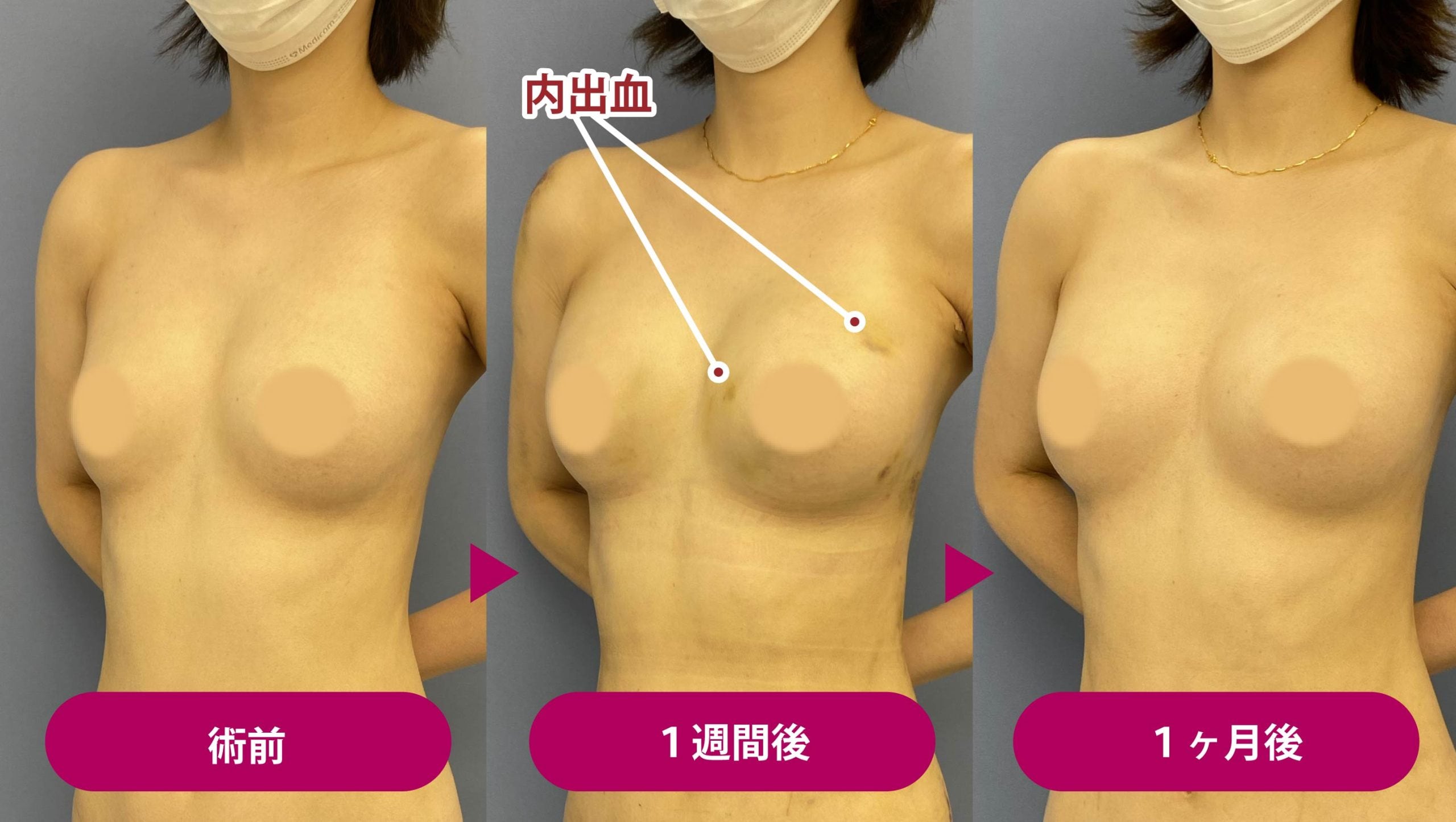 豊胸手術後の腫れや内出血の出方には個人差があります。