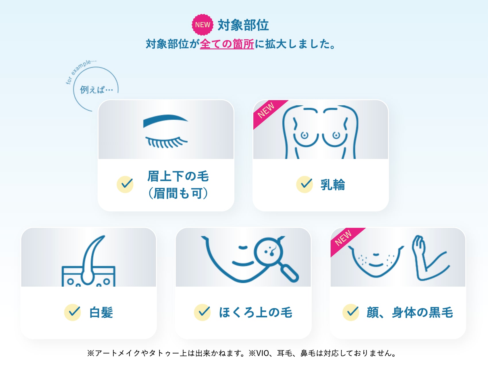 ※VIO、耳毛、鼻毛、ひげは対応しておりません。