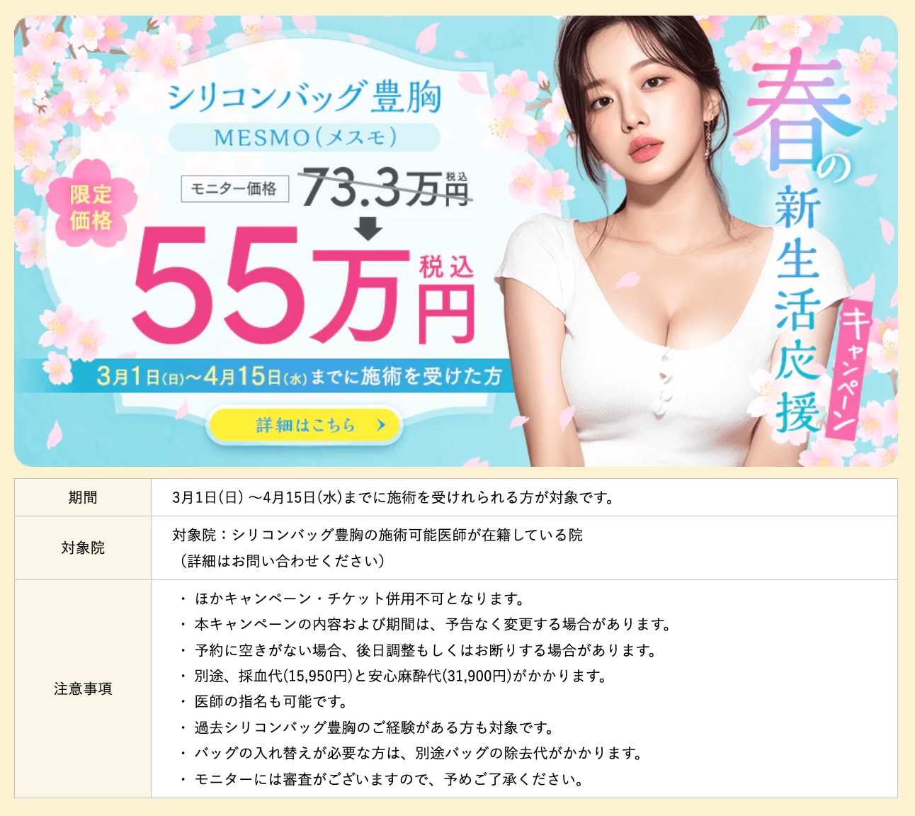 『豊胸インプラントバッグMESMO(メスモ)』のモニター価格が期間限定で約25%オフ‼️