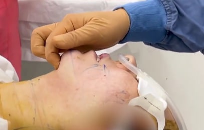 フェイスラインというのは、頬と顎の境界なので、顎下にも糸リフトを入れていきます。