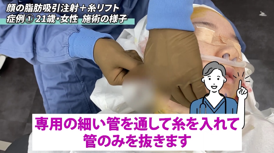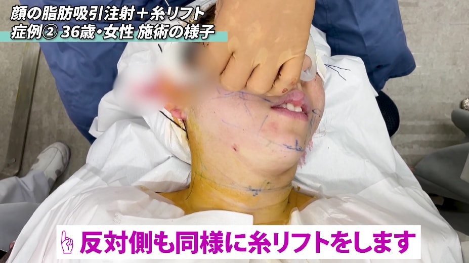 脂肪吸引注射だけでも良いですが、今回は、糸リフトを入れます。