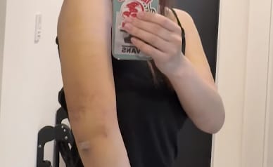 腕は、こんな感じで黄色く内出血が出ています。