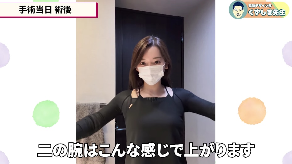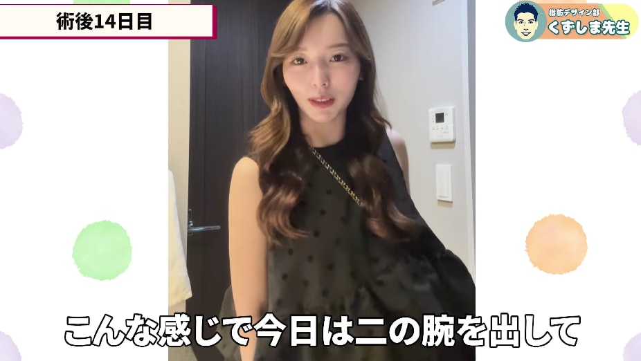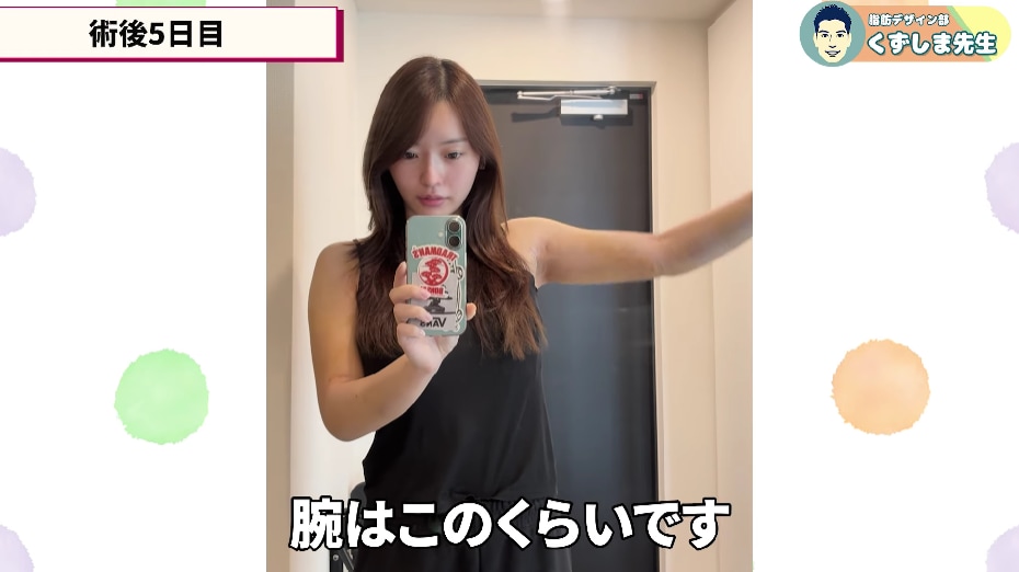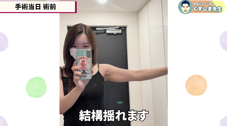 くずしま先生は、圧倒的な二の腕脂肪吸引の症例数と、InstagramやYouTubeなどで解説が詳しく書いてあり「安心できるな」と思い、今回お願いしようと思いました。