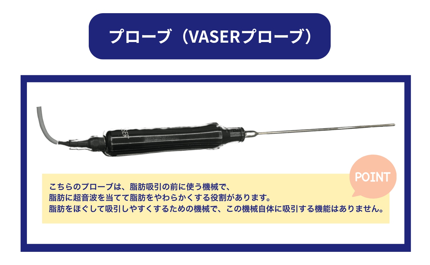 このプローブからは超音波(ベイザー波)が発生し、脂肪をやわらかくすることができます。