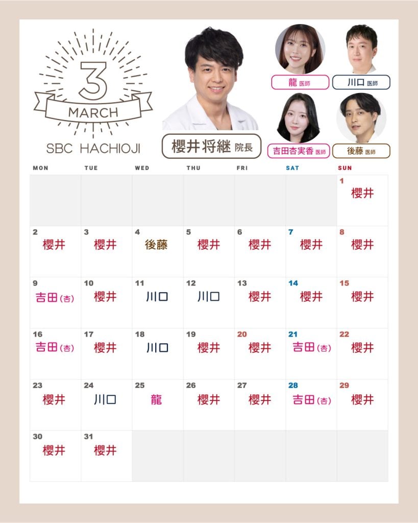 【2026年3月】医師出勤カレンダー