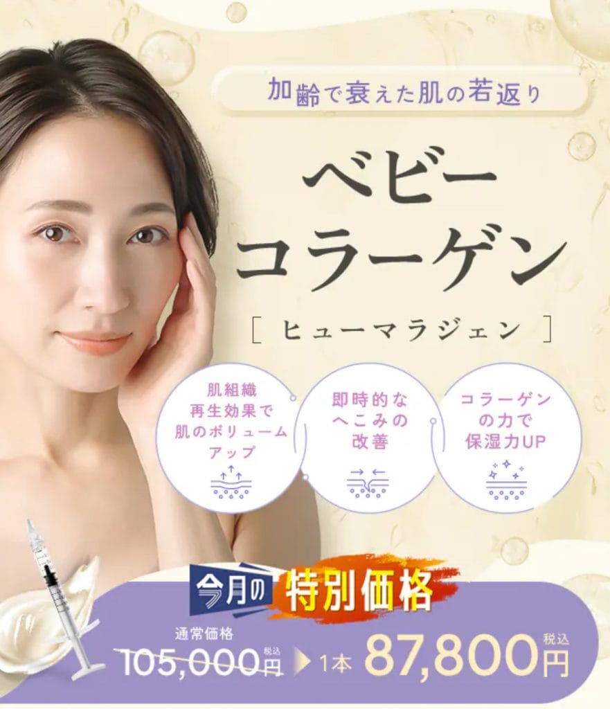 ベビーコラーゲンを注入することで減少したコラーゲンを補うことができます。