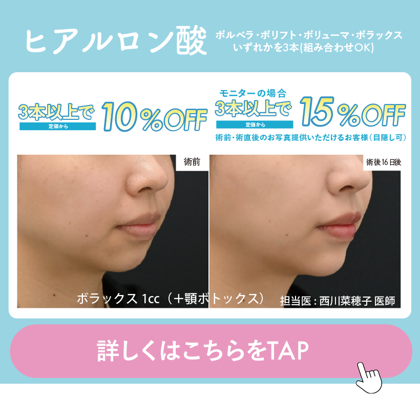 そのほか、二重整形(切開法・埋没法)医療脱毛(全身脱毛・VIO脱毛)、ヒアルロン酸注入、シミ取り、ボトックス注入、医療ハイフなどの小顔治療、美容皮膚科治療といった幅広い施術も取り扱っています。