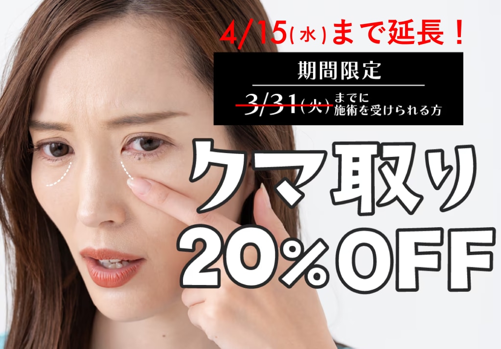 4/15まで延長!クマ取り施術が20%OFF!新生活を迎える前に気になる目元をマイナス5歳♩
