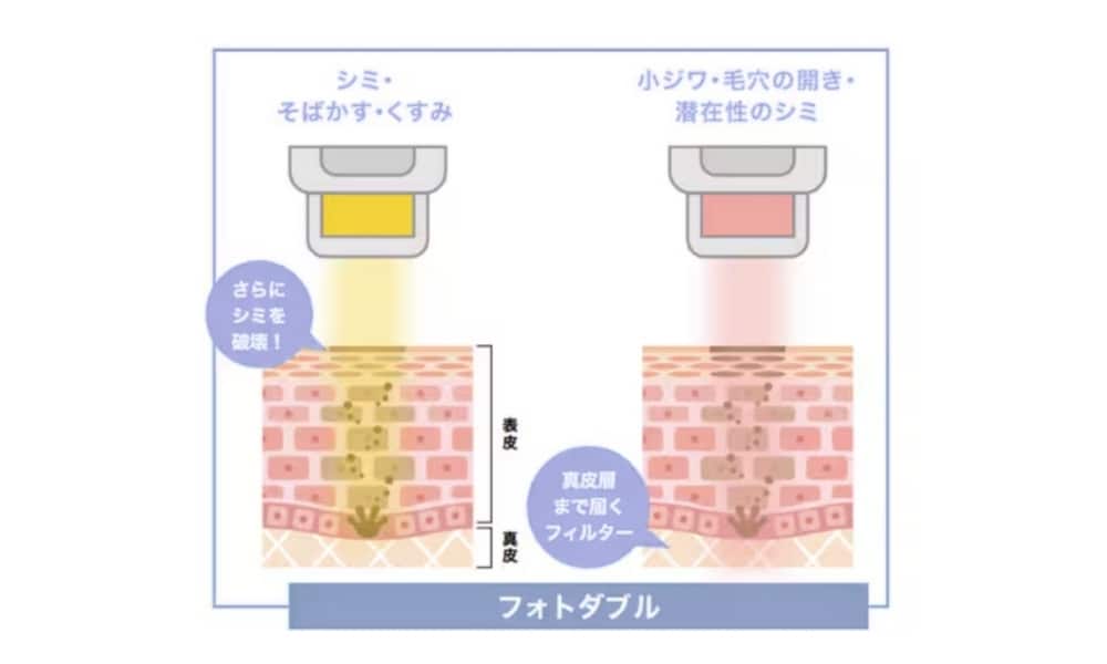 肌の奥深くまで届く光を重ねて照射(2段階照射)することで、