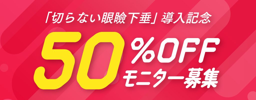 大好評いただいている「切らない眼瞼下垂50%OFFモニター」ですが、ついに終了の時期が迫ってまいりました。