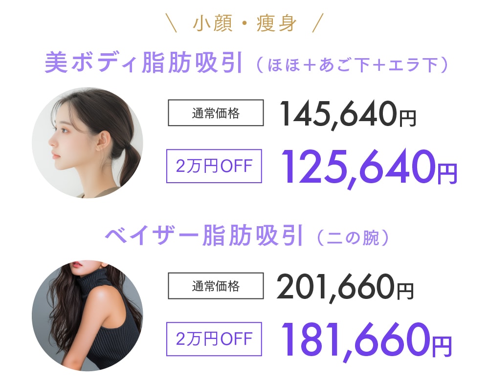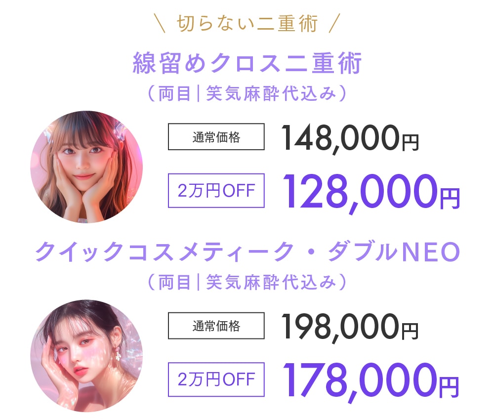 ※施術によっては別途麻酔代が必要な場合があります。詳細はクリニックでのご相談時にお問い合わせください。