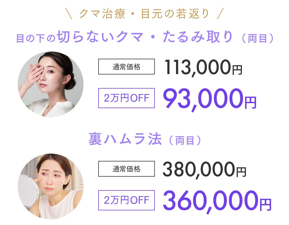※施術によっては別途麻酔代が必要な場合があります。詳細はクリニックでのご相談時にお問い合わせください。