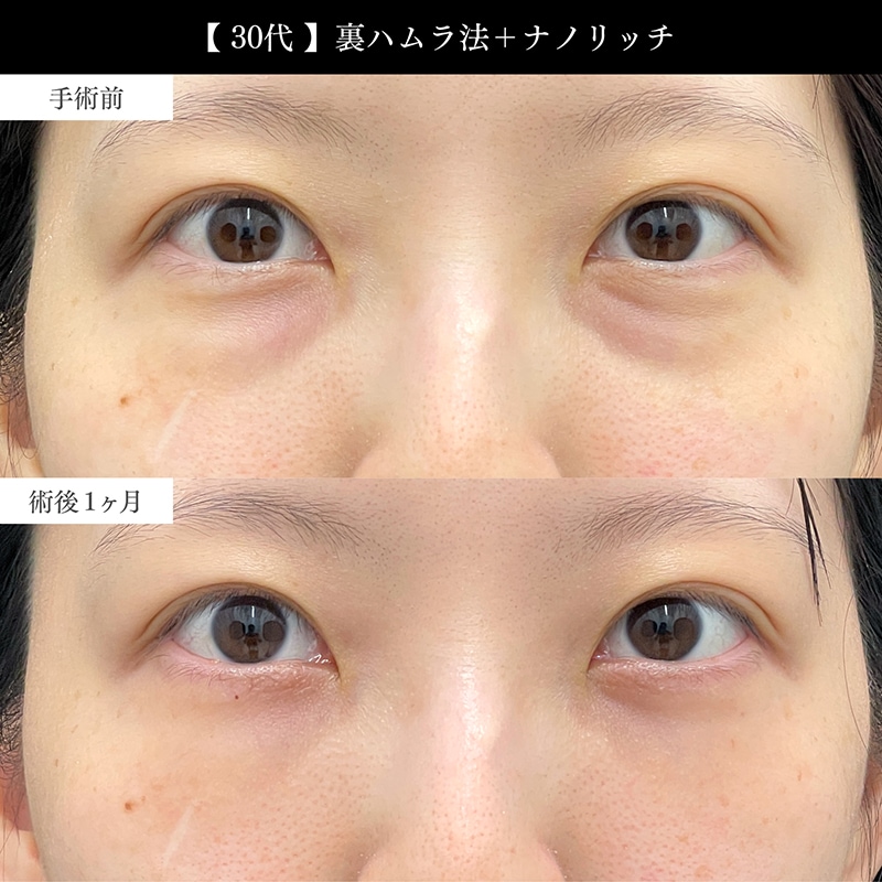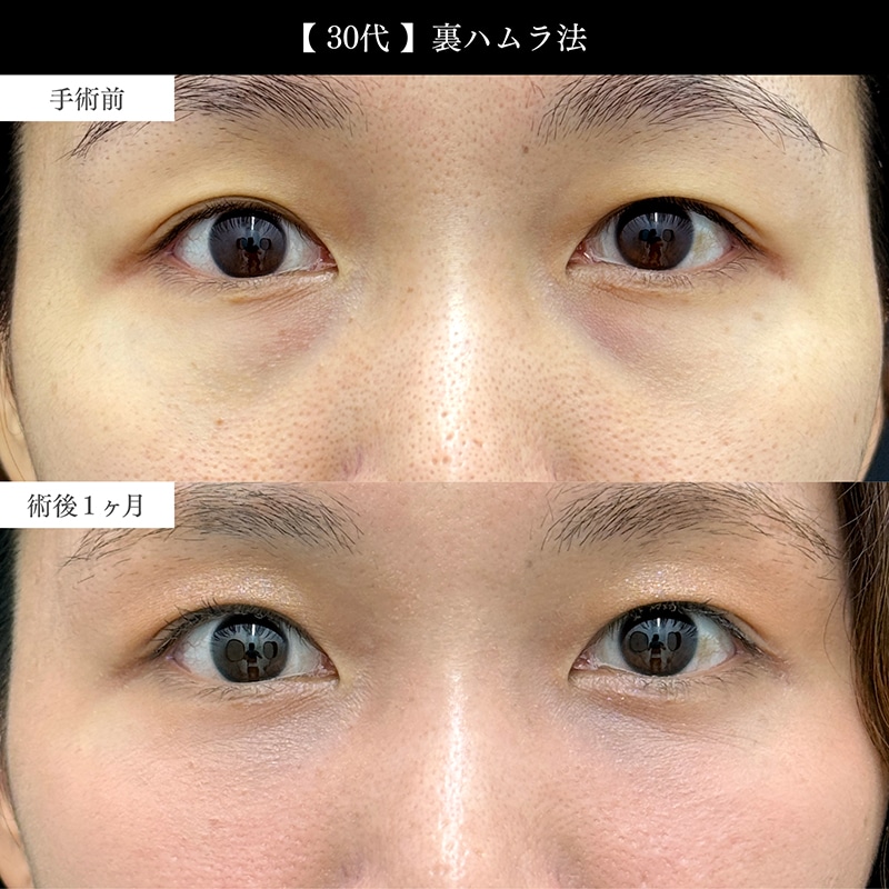 脱脂後のくぼみや残った膨らみは、裏ハムラで脂肪を整えることで改善できるケースが多々あります。まずは無料カウンセリングにて目元を拝見させてください。