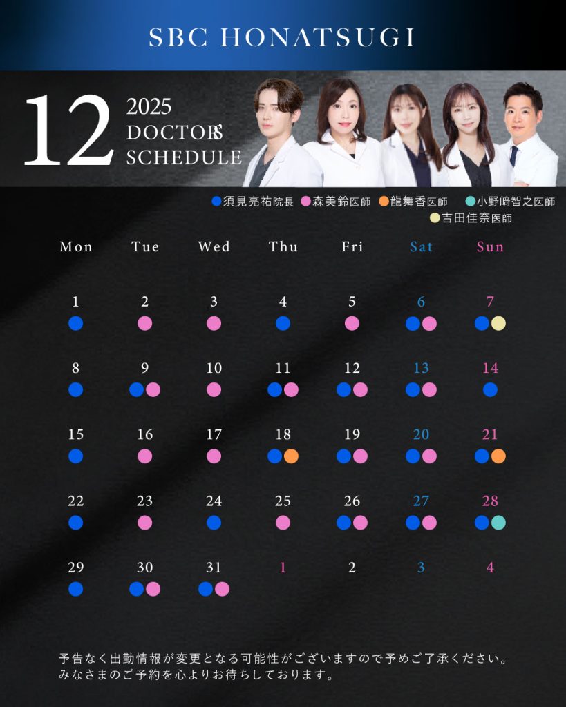 クリニック案内 神奈川県のクリニック 湘南美容クリニック 本厚木院 2025年12月の医師出勤カレンダー