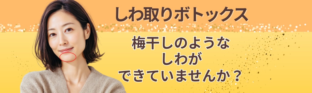 眉間やおでこ、目尻、鼻根部など、表情を変えたり眉をしかめたりすると生じるシワを改善することができる注射治療で、“しわ取りボトックス”/“しわ取り注射”と呼ばれています。