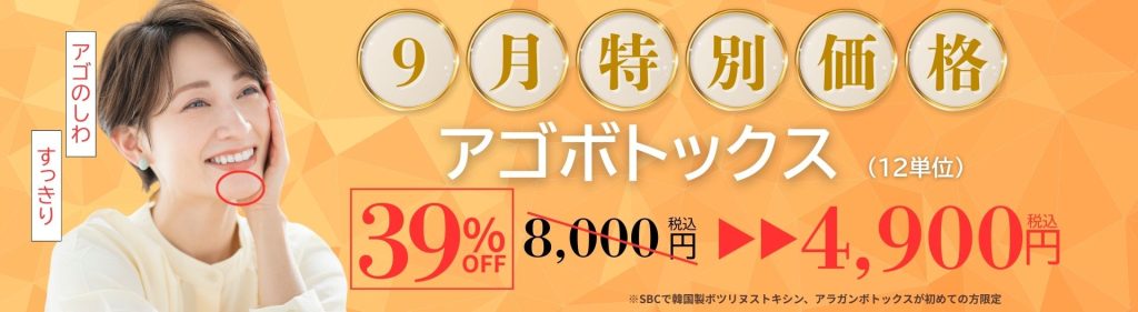 9月特別特価💉🚨あごボトックス39%OFF🚨💉