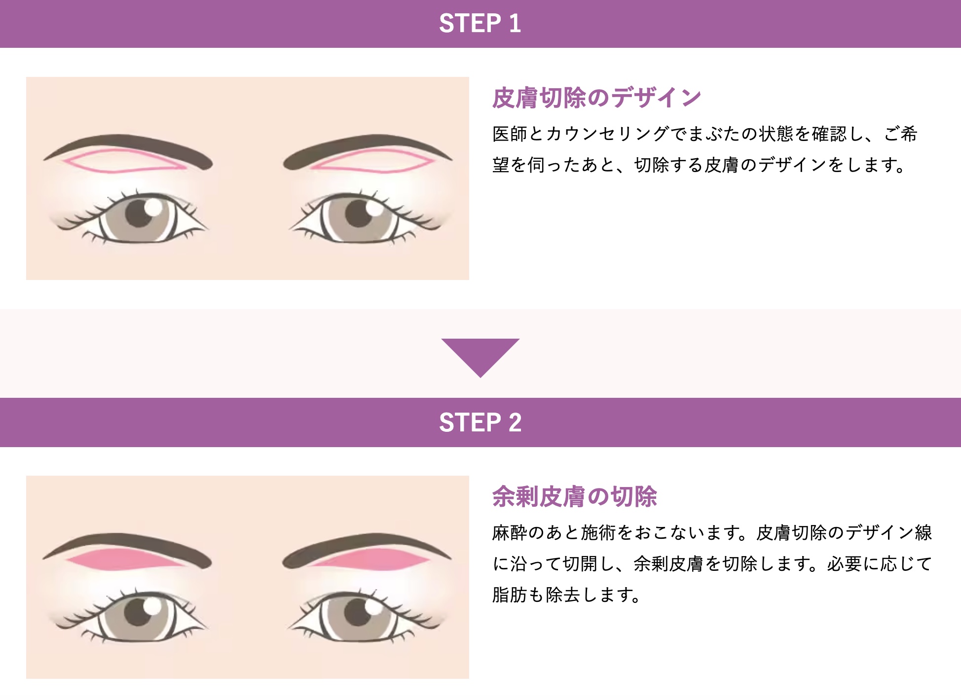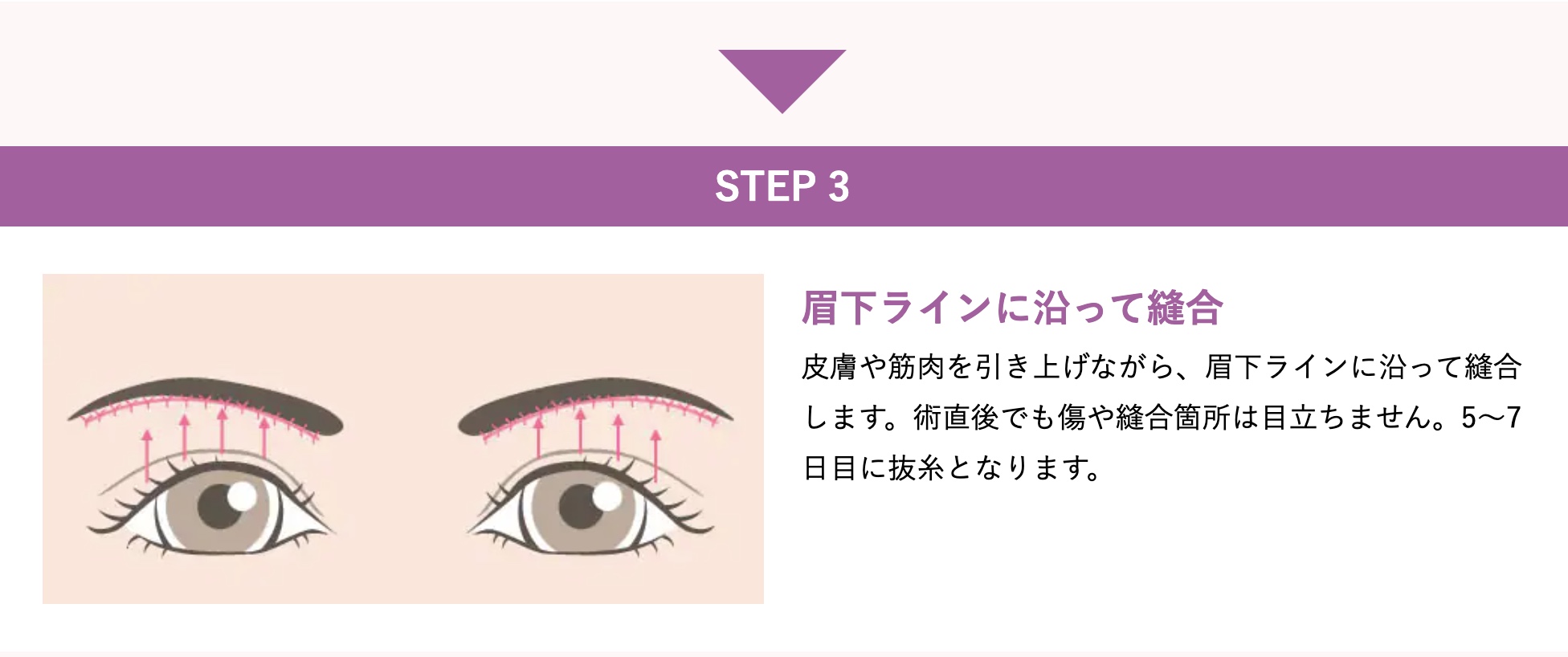 眉下リフト(眉下切開)は、眉下のたるんだ皮膚を切開して引き上げる