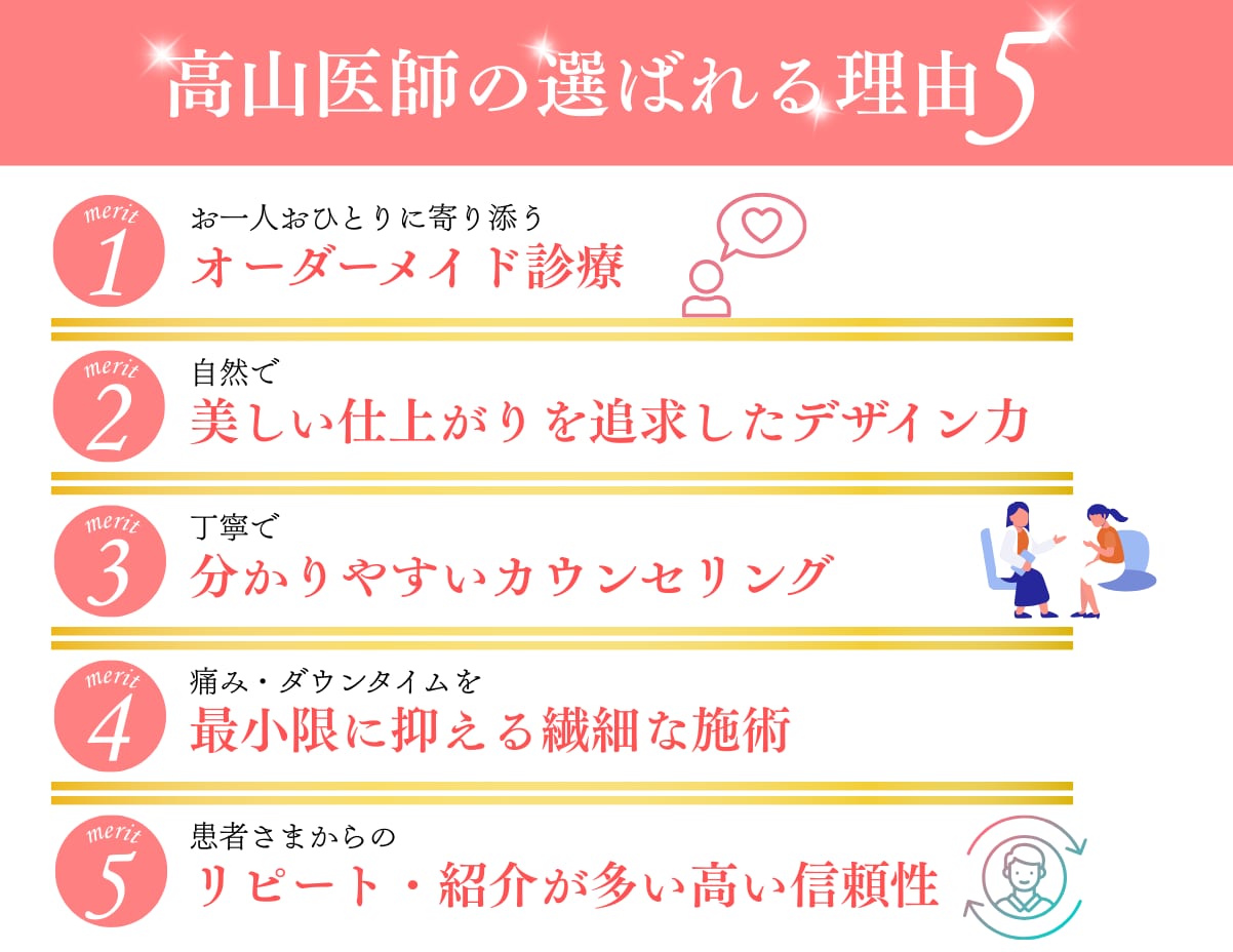 お客様のお悩みに寄り添ったご提案と高い技術力で、施術後に他の施術を『また高山医師にお任せたい!』方が多数いらっしゃる高山医師。