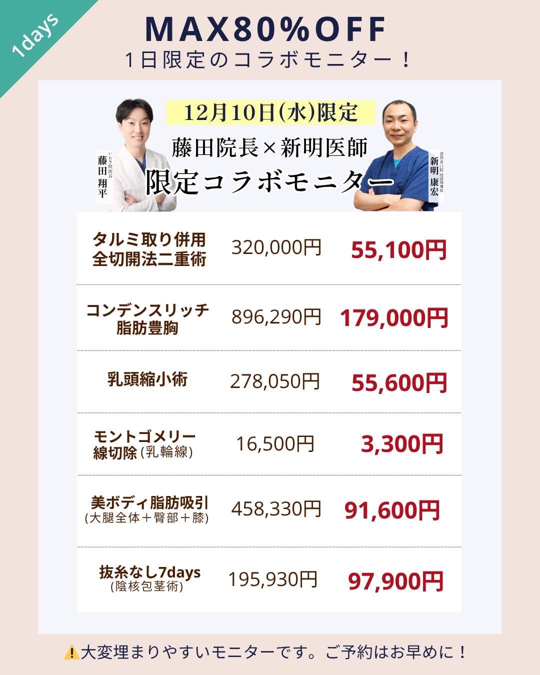 12月も1日限定のMAX80%にもなる超超超お得なモニターの募集が始まりました🉐🎉
