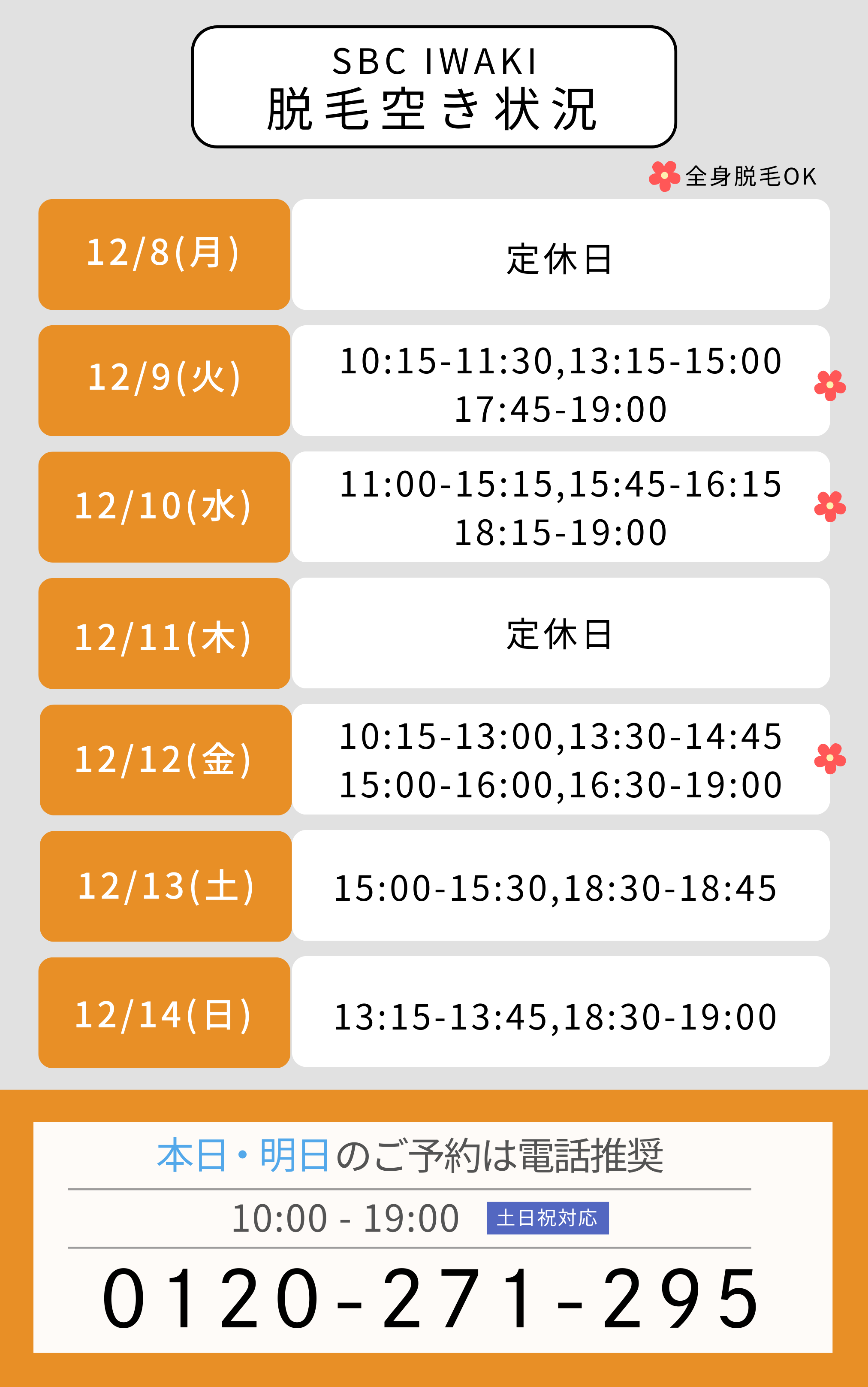 AM10:00~PM7:00(最終カウンセリング予約PM5:30まで) ※休診日:月曜・木曜 |