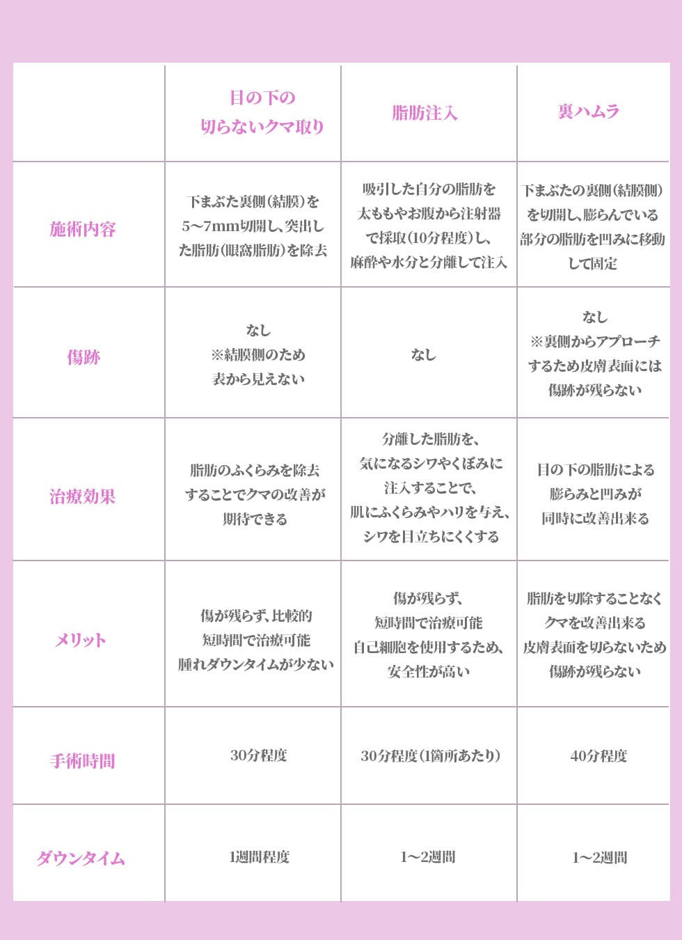 眼窩脂肪を切り離すことなくクマを改善することができます。