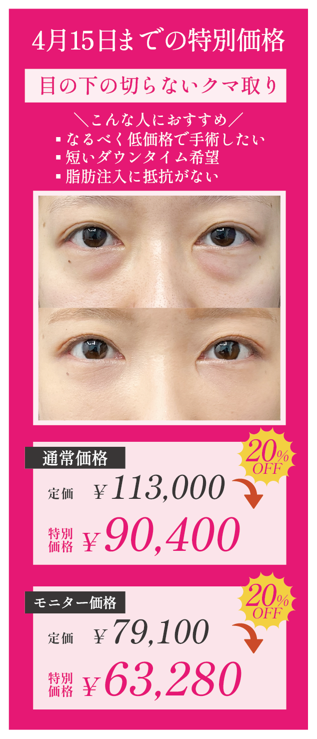 【クマ取り20%OFF大延長!🔥】4月15日までの施術でクマ取りがおトクに受けられます✴︎