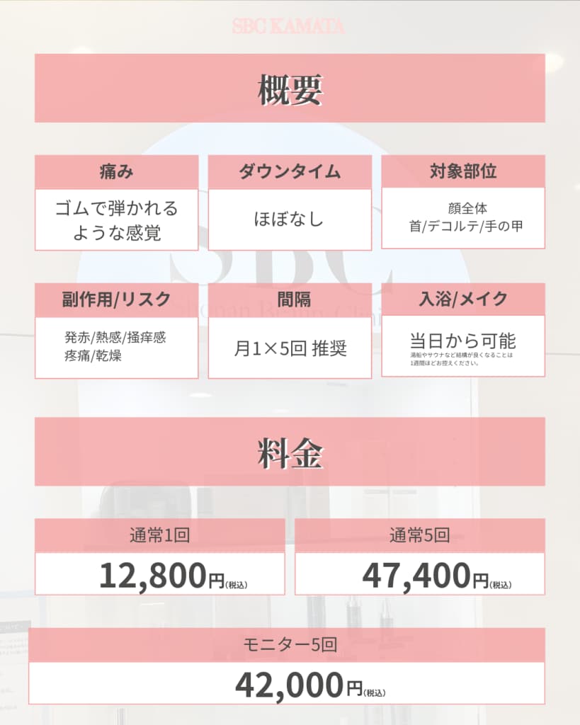 顔だけでなく、首・手の甲・デコルテなどの小ジワ、たるみ、くすみが気になる方で、痛みやダウンタイムのない治療をご希望の方にもおすすめの治療です。