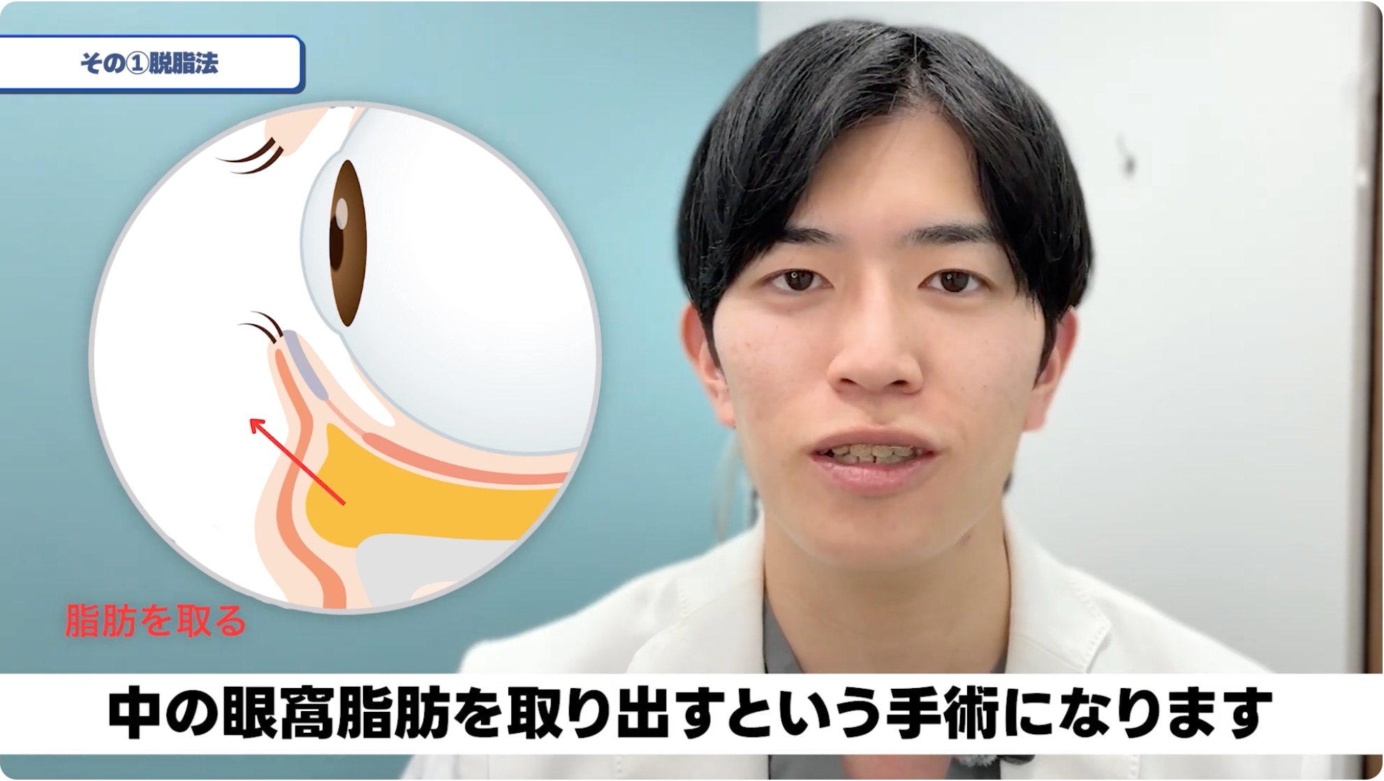 これによって前に出てる目の膨らみが、窪んでいる頬の上に隠せるというような手術になります。