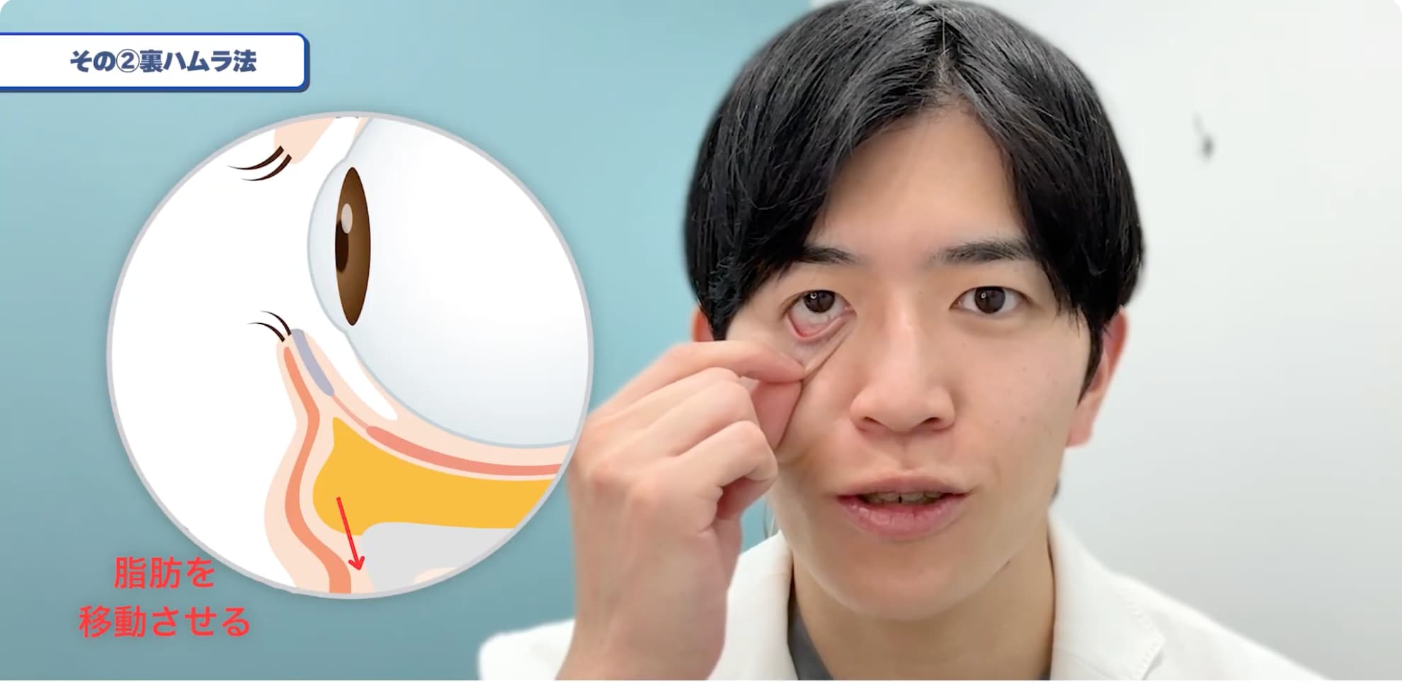 戻るまでに「約2秒」かかるような人は切開ハムラ法が適応になります。