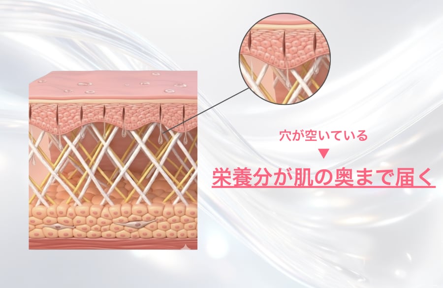 シルファームXの最大の特徴は、高周波でお肌の奥を刺激すると同時に、目に見えないほどの極小の「通り道」を作ること