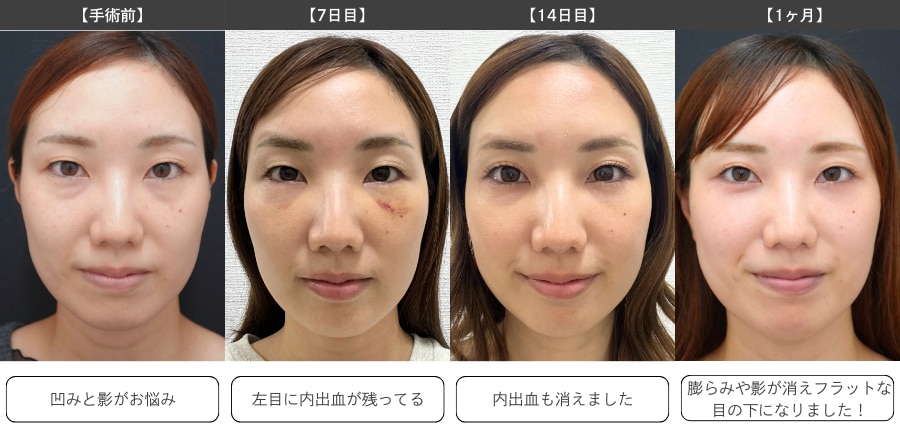 術後は、凹みとラインが改善され目の下がフラットになりました。