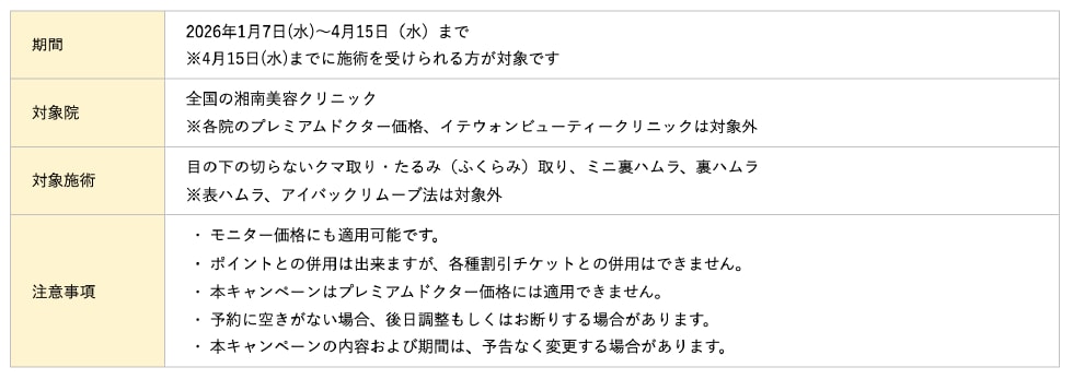 クリニック案内 石川県のクリニック 湘南美容クリニック 金沢院 湘南美容のクマ取り【20%OFF】たるみ取り&裏ハムラ&ミニ裏ハムラが対象