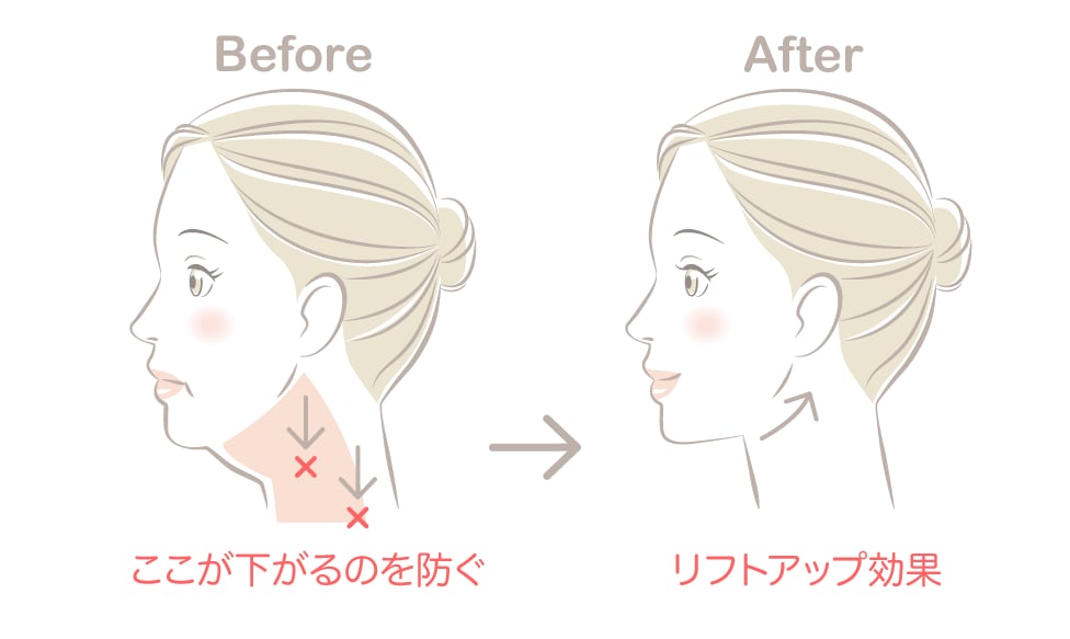 下方向への筋肉の力を弱め、自然にフェイスラインが引き締まるように働きます。