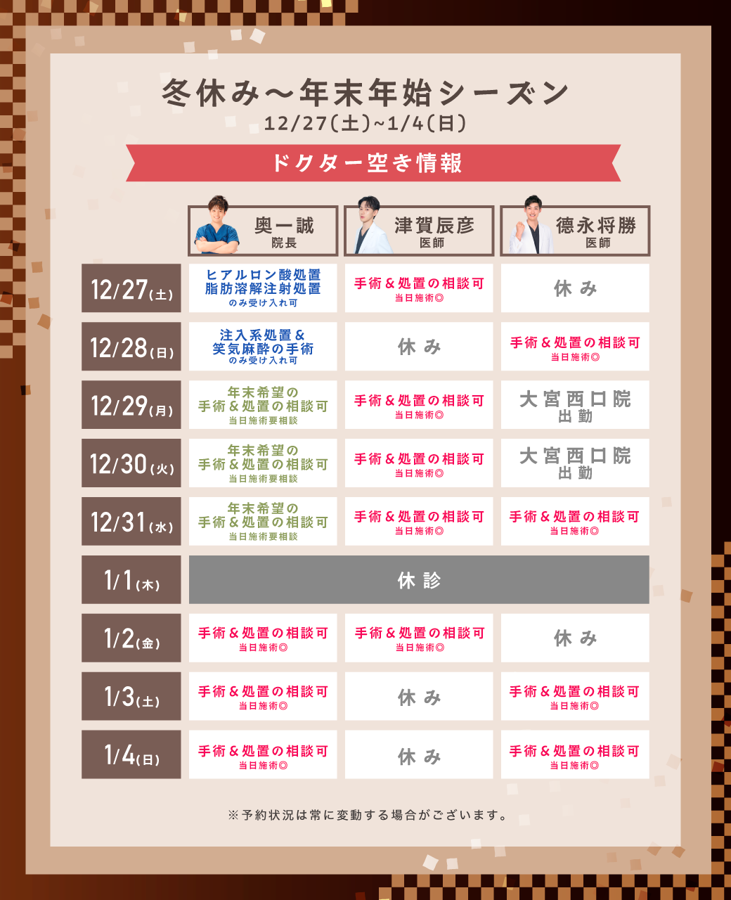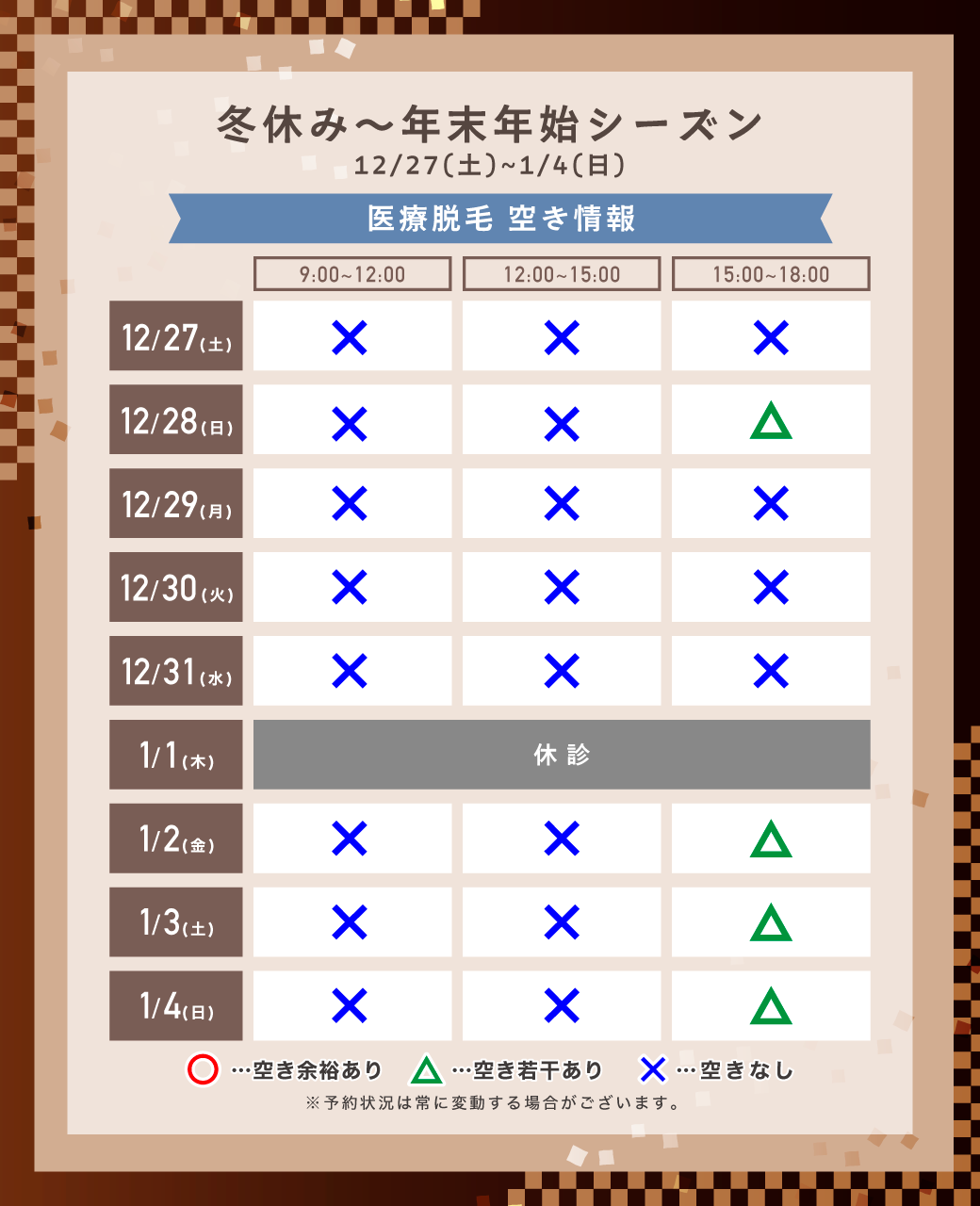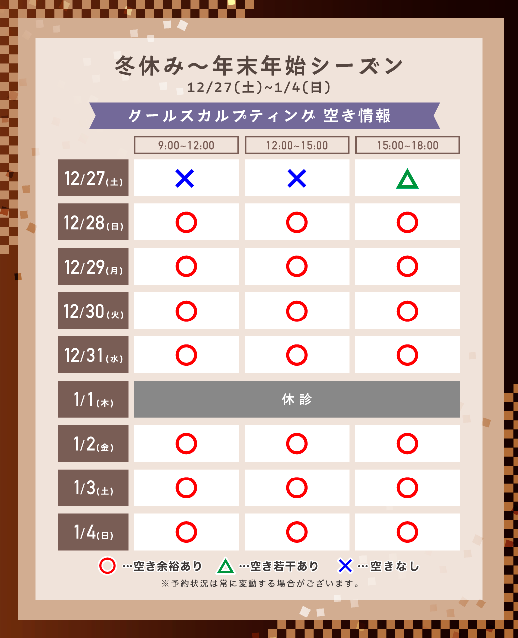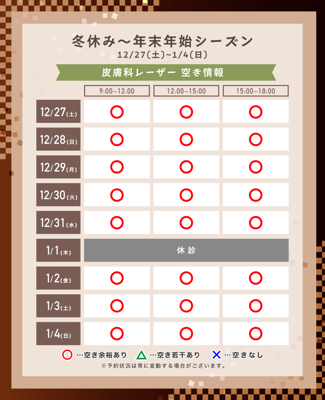 🌅2025年冬 最新版🌅 冬休み・年末年始シーズンの空き状況